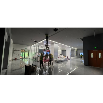 光峰科技新大樓4樓的企業(yè)展廳,采用了我司的LONGCHUNG智慧導(dǎo)覽系統(tǒng),整館劃分了10個(gè)分區(qū)(會(huì)議室除外)。根據(jù)現(xiàn)場(chǎng)需求,整館配備了40個(gè)U02基站,整館定位精度在50cm左右,分區(qū)界限清晰,無(wú)干擾。整館采用了2只手持麥和2只頭戴麥,講解員可以根據(jù)現(xiàn)場(chǎng)情況選用。4只麥可以同時(shí)進(jìn)場(chǎng)講解,不限定行進(jìn)路線,在同一區(qū)域話(huà)筒不沖突。